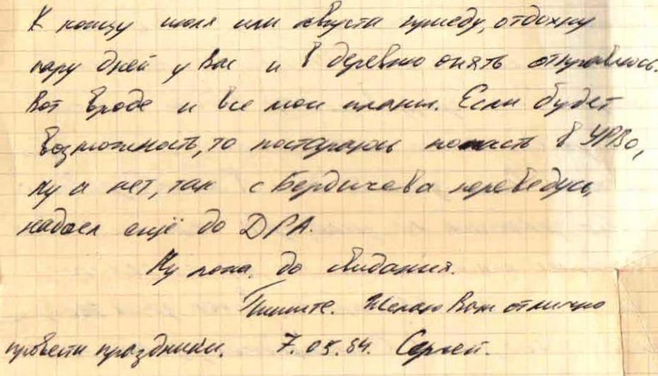 «Учился в Михайловской, а затем Асбестовской школах-интернатах. В 1980 году окончил Пермское военное авиационно-техническое училище. Служил на Украине, потом Афган. Серёжа был жизнерадостным, общительным человеком. Его знали везде, начиная с Соснового Бора, Бисерти, Михайловска и заканчивая Невьянском, Асбестом, Пермью, Ленинградом, Украиной.