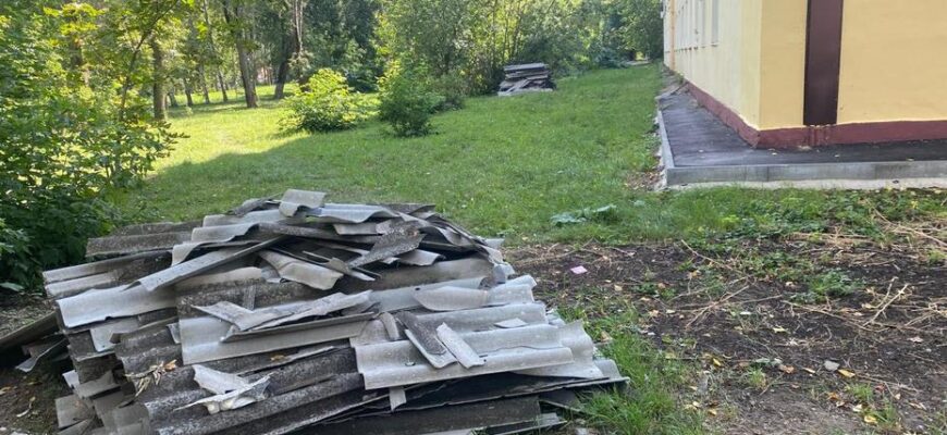 Во дворе жилого дома №8 на улице Белякова в Рязани сложилась неприятная ситуация. После сильных дождей, прошедших в июле 2025 года, некоторые квартиры оказались подтопленными. Для устранения последствий потопа местные службы провели ремонт кровли, заменив повреждённые листы шифера. К сожалению, строительный мусор, оставшийся после ремонта, не был своевременно убран и продолжает находиться рядом с домом. … Читать далее Куча строительного хлама во дворе дома мешает рязанцам
