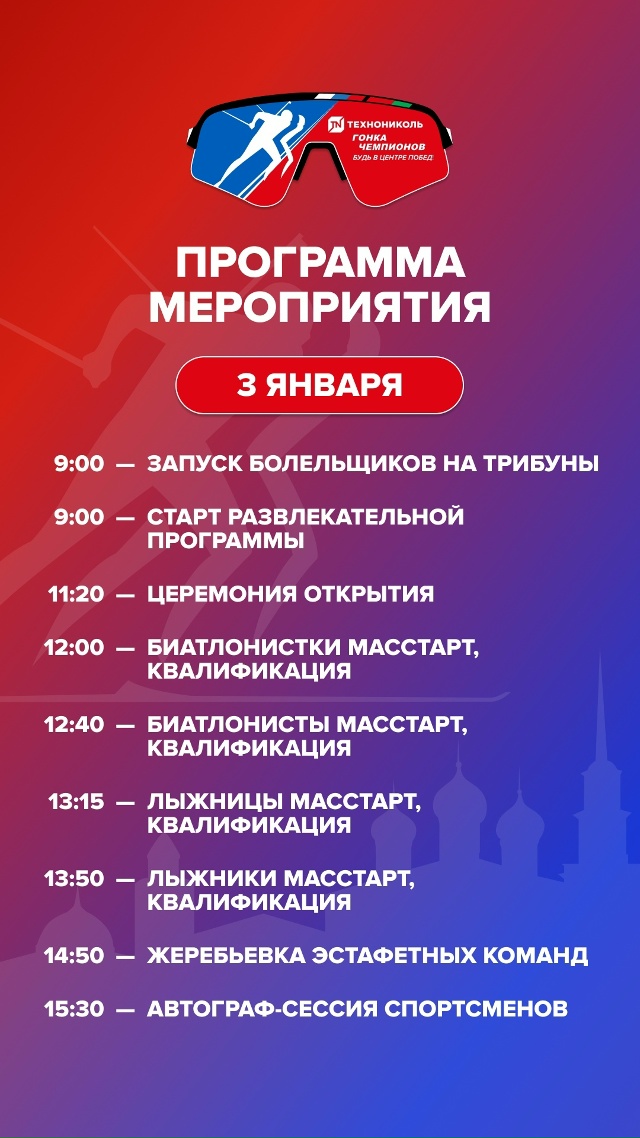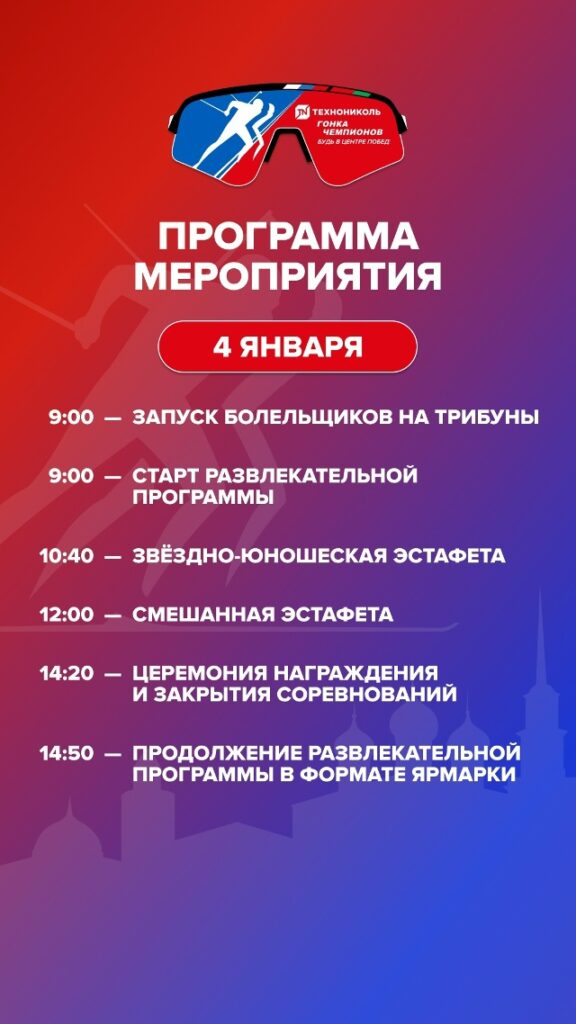 Приходите всей семьей, ведь здесь будет интересно каждому! Гонка Чемпионов 2026 обещает стать одним из лучших стартовых событий зимы в регионе. Не пропустите возможность сделать ваше новогоднее путешествие ярким и запоминающимся событием!