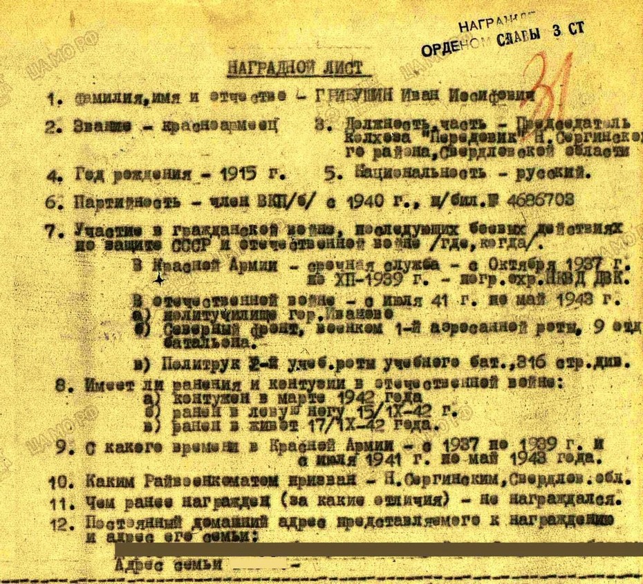 Иван Иосифович Грибушин награждён боевыми медалями «За оборону Сталинграда» и «За победу над Германией в Великой Отечественной войне 1941-1945 гг.».