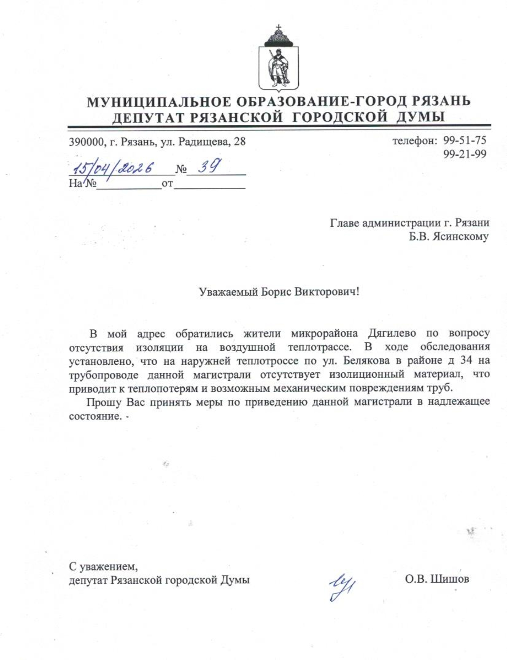 Жители микрорайона выражают серьёзную обеспокоенность и обратились за помощью к депутату Олегу Шишову. По их просьбе был направлен депутатский запрос в администрацию города с требованием принять меры по восстановлению изоляции на данном участке тепловой магистрали.