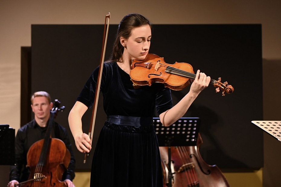 В качестве солистки на сцену вышла выдающаяся скрипачка Мария Лундина, которая является лауреатом множества Международных и Всероссийских конкурсов. Мария также активно сотрудничает с благотворительным Фондом Владимира Спивакова, что подчеркивает ее высокую профессиональную репутацию и значимость в музыкальной среде.