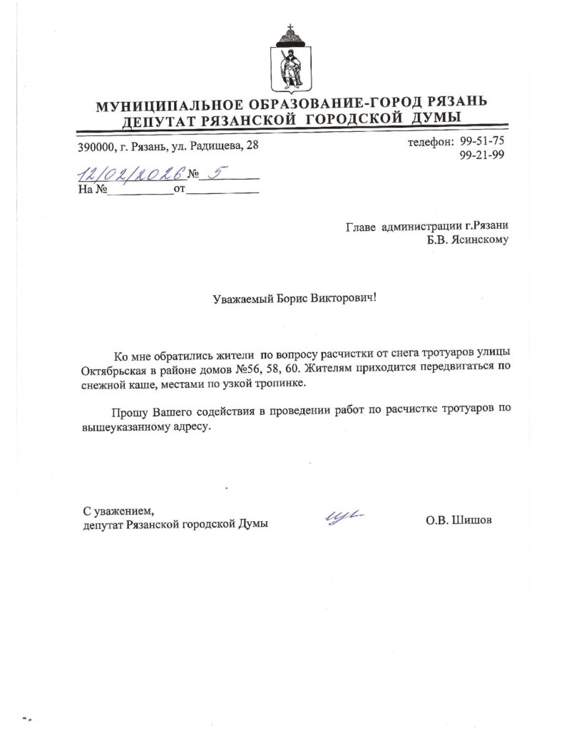 Местные жители обратились за помощью в приёмную депутата Олега Шишова. Депутат направил соответствующий запрос в городскую администрацию с целью организации своевременной уборки заснеженных участков.
