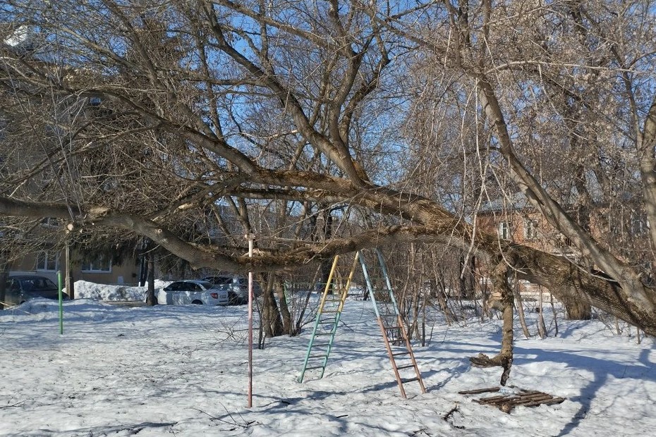 Дерево, которое находится на территории детской площадки, наклонилось так, что его ветви почти касаются земли. В условиях, когда на площадке играют дети, такая угроза становится особенно актуальной. Ветки могут обрушиться в любой момент, что может привести к серьезным травмам.