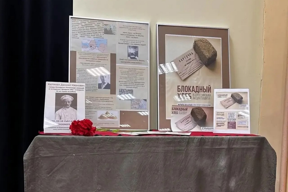 В школе № 17 была организована экспозиция «Блокадный хлеб», где дети узнали о трудностях, с которыми сталкивались ленинградцы в годы блокады.